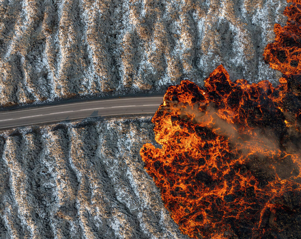 In November 2024, the Sundhnúkur eruption sent molten lava spilling across Bláalónsvegur, transforming the familiar road into a river of black rock. Within hours, a three-kilometer fissure had swallowed the asphalt, cutting off the usual path to the Blue Lagoon and leaving travelers searching for new ways through the peninsula.